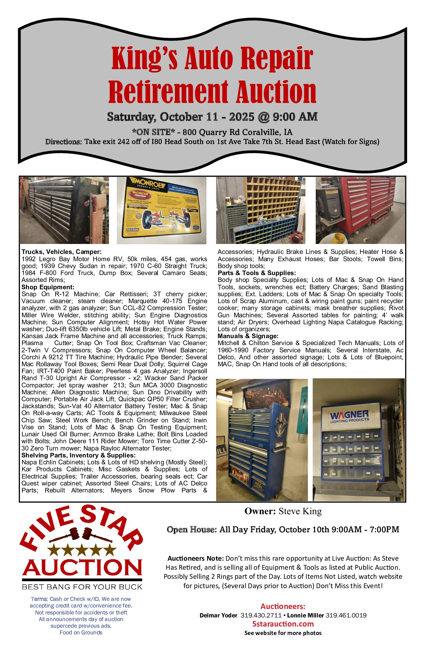 ©2019 5 Star Auction. 319.430.2711 - Website designed by Printers Workshop, Kalona IA printwork@kctc.net